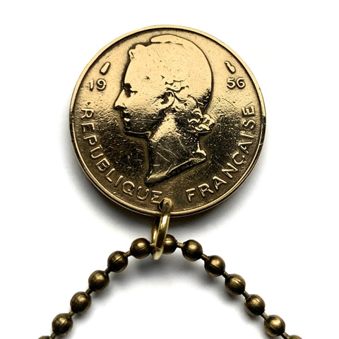 1956 French West Africa 10 Francs coin pendant African jewelry gazelle antelope Senegal Ivory Coast Burkina Faso Togo Niger French Sudan Mali Benin Mauritania Conakry French Sudan Guinea Togoland Upper Volta Dahomey Marianne Dakar Bamako n000271