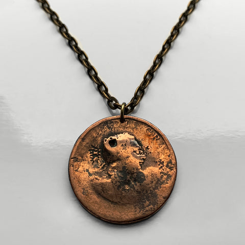 • demonetisierte {nicht mehr im Umlauf} polierte Kupfermünze