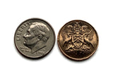 Trinidad und Tobago, Münzanhänger, Halskette, Modeschmuck, Trini, Scharlachroter Ibis, Cocrico-Vogel, Kolibris, Port of Spain, Point Fortin, Diego Martin, Soca, Calypso, Rapso, Karneval, Karibik, Trinidad, Chaguanas, San Fernando, Arima, Scarborough, Westindische Inseln, Pigeon Point Beach, Trinity Hills, Couva, Princes Town, Trinbagonian, Parang, Chutney, Steelpan, Limbo