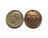 • demonetisierte (nicht mehr im Umlauf befindliche) polierte Kupfermünze