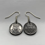 Schweden Sverige 1 Ore Münze Ohrringe Modeschmuck Schwedische Kronen Initiale G Tre Kroner Stockholm Örebro Nordic Skandinavien Wikinger Schweden Svear Svealand Scania Blekinge Linköping e000254