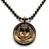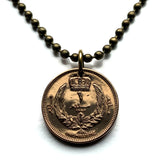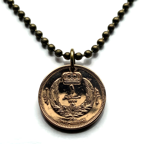 1952 Libyen 1 Piastre Münze Anhänger Libysche Krone Tamazight Benghazi Arabisch Islamisch Misrata Cyrenaica weißer Halbmond Stern Halskette n001664