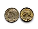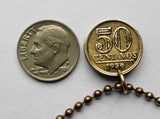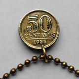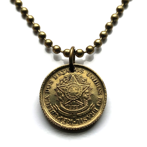 1956 Brazil 50 Cent coin pendant Brasão de armas crux Southern Cross Cruzeiro do Sul Rio de Janeiro São Paulo Brasília Salvador Fortaleza Ipanema Belo Horizonte Curitiba Recife Pelourinho Santa Catarina Porto Alegre Copacabana Carioca Minas Gerais n001736
