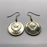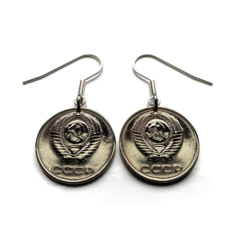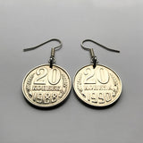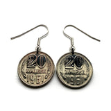 1961 Soviet Union USSR CCCP Communist Russia 20 Kopecks coin earrings hammer sickle socialist Moscow Saint Petersburg Bolsheviks Red Army October Revolution Karl Marx Friedrich Engels Vladimir Lenin Stalin proletariat Kazan Sochi Yekaterinburg e000408