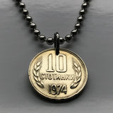 1974 Bulgarien 10 Stotinki Münzanhänger Bulgarischer goldener Löwe Sofia sozialistische Krone България Burgas Ruse Slawisch-kyrillisch Turk Roma n003207