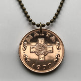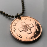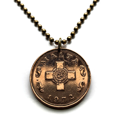 1972 Malta 1 Cent coin pendant George Cross medal World War 2 dolphinfish Valletta Birkirkara St. Paul's Bay Qormi Città Pinto Hompesch San Pawl il-Bahar Saint John Paola Victoria Gozo Comino Rabat the Blue Lagoon Mosta Cominotto Fort Saint Elmo n001508