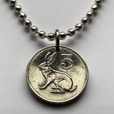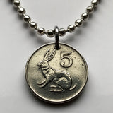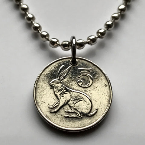 1997 Zimbabwe Rhodesia 5 Cent coin pendant scrub hare rabbit bunny soapstone bird statue Harare Shona Ndebele Bantu Lemba Gweru Kwekwe Kadoma Chewa Zimbo Salisbury Mashonaland Bulawayo Chitungwiza Mutare Epworth Manicaland Masvingo bateleur eagle n000784
