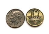 • demonetisierte {nicht mehr im Umlauf} Nickel-Messing-Münze