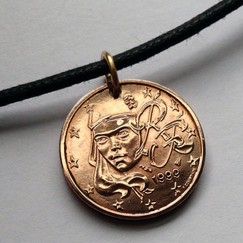 2004 Frankreich 2 Euro Cent Französische Münze Anhänger Halskette Schmuck Marianne Paris Lyon Marseille Lille Toulouse Bordeaux Nantes Straßburg Montpellier Rennes Reims Avignon Le Havre Saint-Étienne Metz Dijon n000491