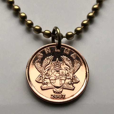 2007 Ghana 1 Pesewa Münzanhänger Goldadler Black Star of Africa Accra Asante Twi Mole-Dagbon Fante Cape Coast Osu Castle Ewe Ga Adowa Kumasi Gold Coast Tamale Takoradi Atsiaman Tema Ashanti Dagomba Volta Brong-Ahafo Sekondi-Takoradi Kaurimuschel n002586