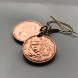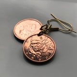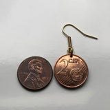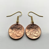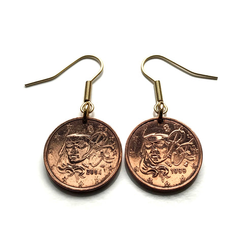France 2 Euro Cent coin earrings French jewelry Marianne Paris Lyon Marseille Lille Toulouse Bordeaux Nantes Strasbourg Montpellier Rennes Reims Avignon Le Havre Saint-Étienne Metz Dijon Carcassonne Côte d'Azur Normandy Loire Valley Versailles e000467