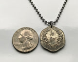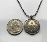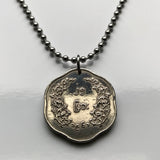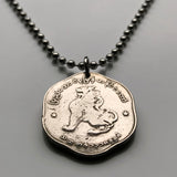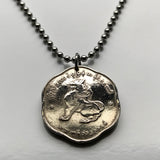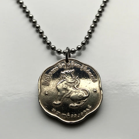 Burma Myanmar 25 Pyas Münze Anhänger Halskette Schmuck Chinthe Chinze Schutzlöwe Buddhistische Pagode Kyaung Naypyidaw Yangon Mandalay Bago Hpa-An Taunggyi Monywa Bamar Shan Pagan Mrauk U Shwedagon Pyu n000066