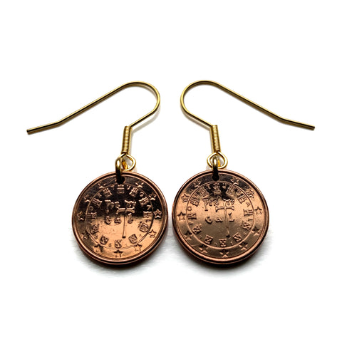 für a: Portugal Portugiesische Münze Schmuck Ohrringe 5 Quinas-Schlösser Lissabon Porto Sintra Braga Quincunx-Kreuz Coimbra Évora Faro Santa Maria de Belém Douro Fluss Mirandese Iberia Kastilisch Vila Nova de Gaia Guimarães Pena-Palast Burg Almada Algarve Praia da Marinha Lissabon Porto Vasco da Gama Zeitalter der Entdeckungen Meere Atlantik Schiffsanker Caravela Karacke