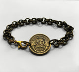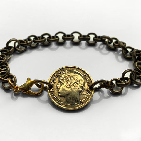 1936 France 50 Centimes French coin rolo link bracelet fashion jewelry Marianne Phrygian cap Paris Marseille Lyon Toulouse Le Havre Bordeaux Nice Strasbourg Carcassonne Nantes Lille Montpellier Dijon Rennes Reims Avignon Metz Toulon Angers Dijon b000121