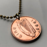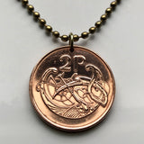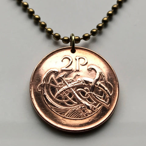 Irland Éire 2 Pence Münze Anhänger Halskette Schmuck Buch von Kells Vogel Cláirseach Irische Harfe Dublin Kork Limerick Waterford Guinness Connacht Hibernia Evangelium Buch Manuskript Skript Icovellavna n000118