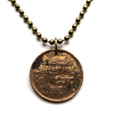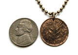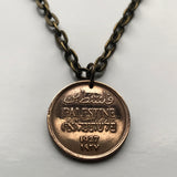 1927 Palästina 1 Mil Münze Anhänger Halskette Schmuck Palästinensischer Olivenzweig Hebron Westjordanland Nablus Gazastreifen Olivenkranz Rafah Deir al-Balah Al-Bireh Abu Dis Tubas Arabisch Hebräisch Israel Zweiter Weltkrieg Ära n000995