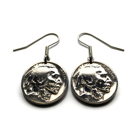 USA 5 Cent Buffalo Indian Head Nickelmünze Ohrring Indianer Bison Chief Iron Tail New York Washington Texas Nebraska NYC e000113