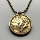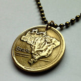 1946 Brazil 2 Cruzeiros coin pendant necklace fashion jewelry Brazilian map Rio de Janeiro Brasília São Paulo Pernambuco Belo Horizonte Salvador de Bahia Fortaleza Belém Pelourinho Recife Ipanema Bahia Curitiba Santa Catarina Copacabana Carioca n000750