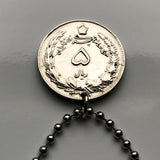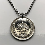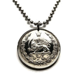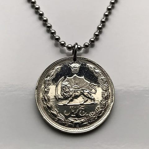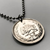 1959 Iran Persia 5 Rials coin pendant necklace jewelry Iranian lion Tehran Mashhad Isfahan Karaj Shiraz Tabriz Qom Ahvaz Kermanshah Urmia Fars Medes Mount Damavand Alborz Farsi Rasht Razavi Khorasan Khuzestan n003399