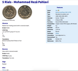 Iran Persia 5 Rials {1959-1967} ~ Mohammad Rezā Pahlavī