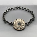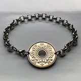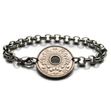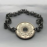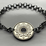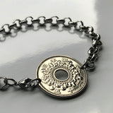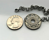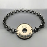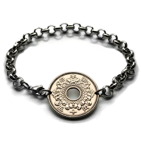 Japan Nippon 50 Yen Chrysanthemum flower Tokyo Kobe Osaka coin bracelet Okinawa Hiroshima Chiba Sakai Niigata Nagasaki Honshu Kanji b000054