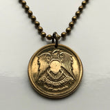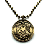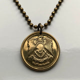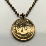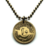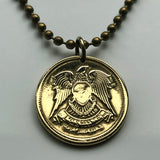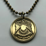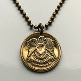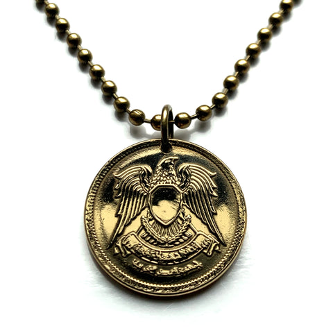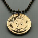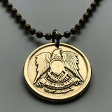 1973 Egypt 10 Milliemes coin pendant necklace jewelry Hawk of Quraish falcon eagle Egyptian Libyan Federation of Arab Republics Middle East shield n002710