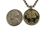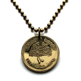 1975 Egypt 10 Milliemes coin pendant Egyptian family hieroglyphs Cairo Alexandria Luxor Thebes Aswan Port Said Suez Abu Simbel Khafra Great Sphinx of Giza pyramids Tutankhamun Saladin Nile Abu Simbel Mount Sinai Shubra El Kheima Mansoura Tanta n003693