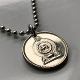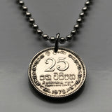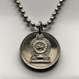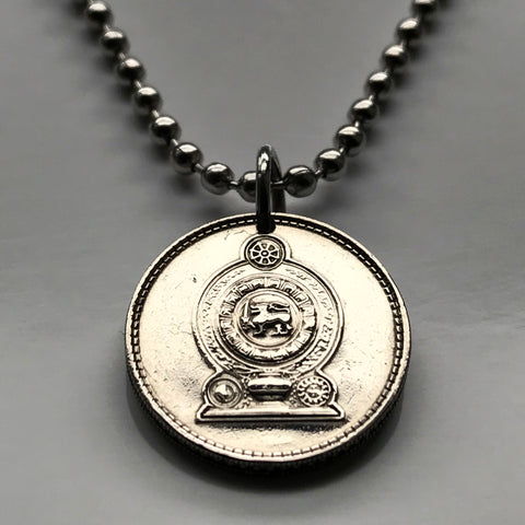 1975 Sri Lanka Ceylon 25 Cents coin pendant gold lion kastane sword Sinha Flag Colombo Kotte Sinhalese Buddhism Anuradhapura Kataragama Sabaragamuwa Kaduwela Maharagama Kesbewa Eelam Tamils Sigiriya Sri Pada Kandy Dharmachakra Jaffna Polonnaruwa n003215
