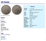 Ceylon 25 Cents {1975-1994} 2S