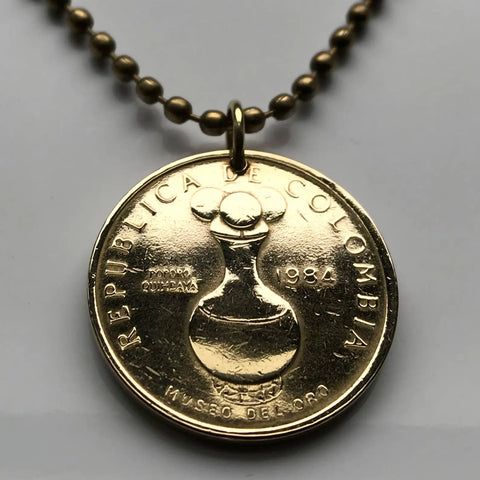 1982 Colombia 20 Pso coin pendant Poporo Quimbaya museo de oro gold museum Bogotá Antioquia Caldas Risaralda Quindío Valle del Cauca n000681