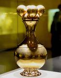 front: Poporo Quimbaya. Its primary use was as a ceremonial device for chewing of coca leaves during religious ceremonies. It was made around 300 B.C. It is used to carry the lime to the mouth while chewing coca leaves. Exhibited in the Gold Museum in Bogotá, Colombia