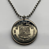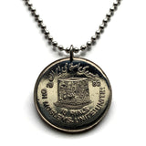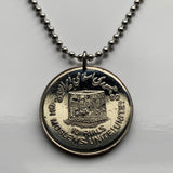 1982 Iran Persia 10 Rials coin pendant necklace jewelry Kaaba Masjid al-Haram Islamic mosque Mecca Saudi Arabia Muslims Unite Dome of the Rock Jerusalem Tehran Mashhad Isfahan Karaj Shiraz Tabriz Qom Ahvaz Kermanshah Urmia Fars Medes Farsi n003632