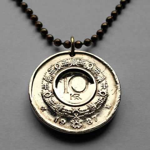 1986 Norway Norge 10 Kroner coin pendant Royal Norwegian Order of Chivalry Saint Olav Livery collar initial O Oslo Bergen Stavanger Sandnes Nynorsk Bokmal Trondheim Drammen Fredrikstad Sarpsborg Porsgrunn Skien Viking Scandinavia Nordic Norse n001573