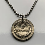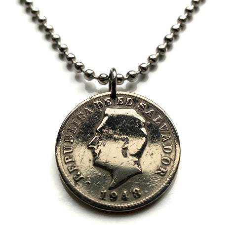1948 El Salvador 5 Centavos coin pendant necklace jewelry Francisco Morazan Santa Ana Soyapango San Miguel Santa Tecla Mejicanos Apopa Ahuachapán Ilopango Colón Tonacatepeque Opico Zacatecoluca n001464