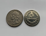 • demonetized {no longer in circulation} polished Copper-nickel coin