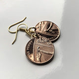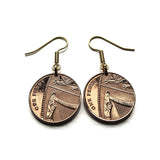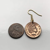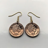 United Kingdom Great Britain England Northern Ireland 1 Penny coin earrings Irish Celtic harp Cláirseach English lions British Royal Shield Belfast London Manchester Derry Liverpool Greater Craigavon Birmingham Newtownabbey Bangor Southampton e000354