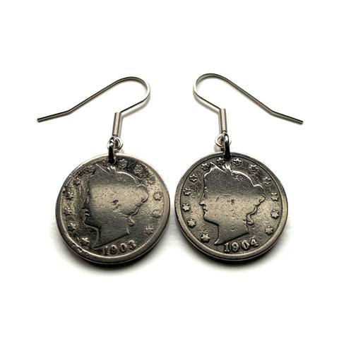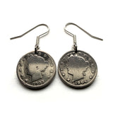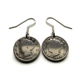 antique relic souvenir USA United States of America earrings American jewelry Lady Liberty V Nickel 13 colonies Statue of Liberty New Hampshire Massachusetts Rhode Island Connecticut New York New Jersey Pennsylvania Delaware Maryland Virginia North Carolina South Carolina Georgia Florida California Texas Maine Arizona Washington Nebraska