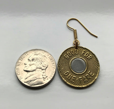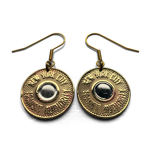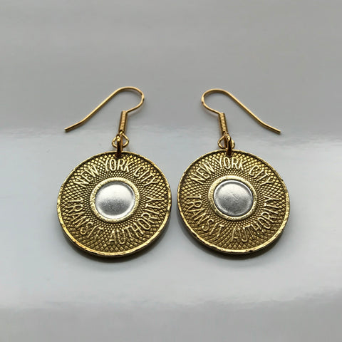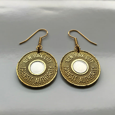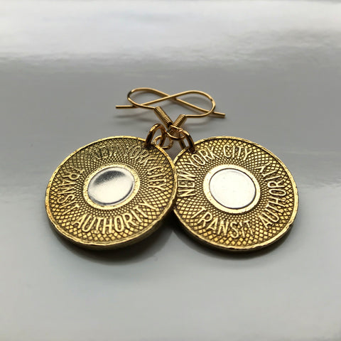 USA NYC 1986-1989 New York City Subway transit token coin earrings Manhattan Brooklyn Bronx Queens E F R trains railroad transportation e000251