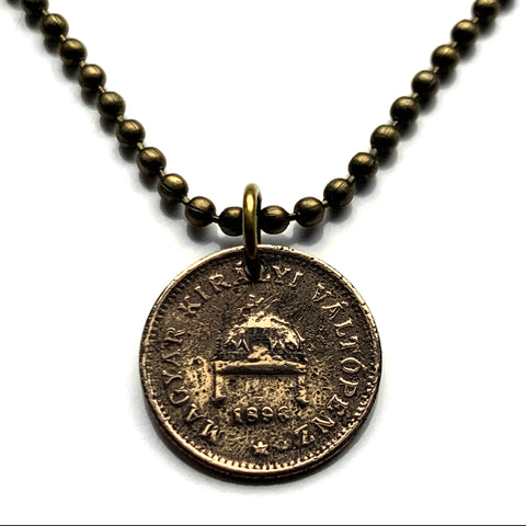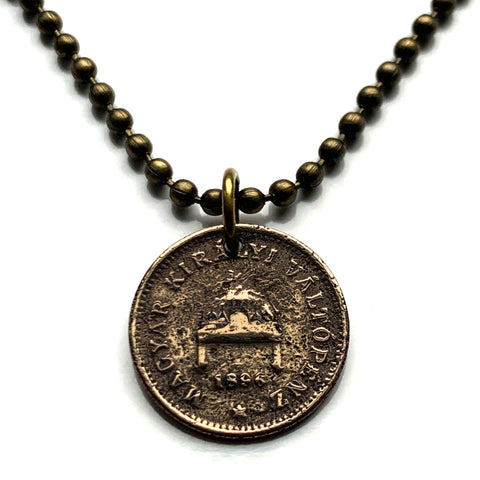 1896 Hungary Magyars 1 Filler coin pendant necklace jewelry Hungarian Holy Crown of Saint Stephen Szent Korona Budapest Debrecen Szeged Pannonian Jasz Basin Csangos Ugrians Buda n000395