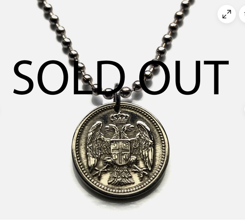 antique! 1912 Serbia Srbija 10 Para coin pendant Serbian double headed eagle Belgrade Novi Sad Niš city Kosovo Yugoslavia Vojvodina Kragujevac Subotica Zrenjanin Nišava Nemanjić dynasty Serbs n001386