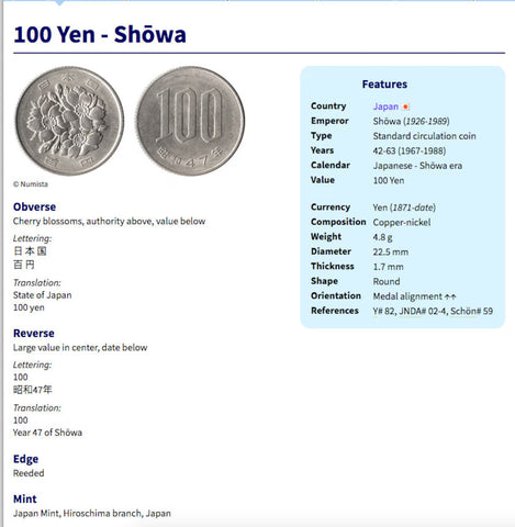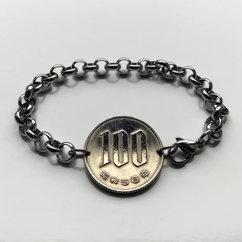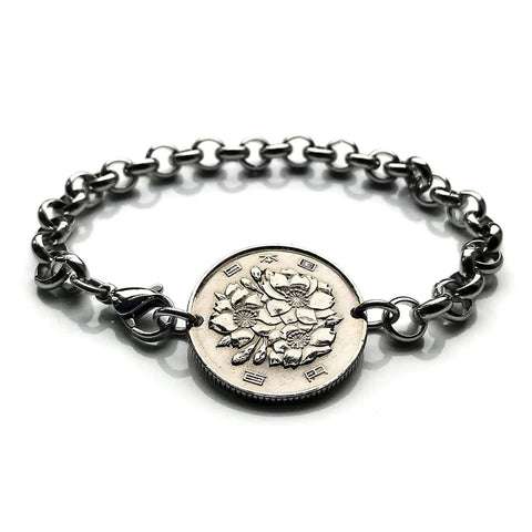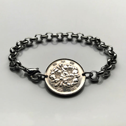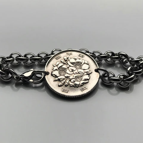 Japan Nippon Nihon 100 Yen coin bracelet sakura cherry blossom Tokyo Osaka Kyoto Okinawa Sendai Chiba Niigata floral b000047