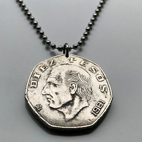 1976 Mexico 10 Pesos coin pendant Mexican eagle Cancun Tijuana Veracruz Toluca Chiapas Pachuca Morelia Durango Guadalajara n002008