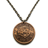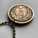 Japan Nippon Nihon coin pendant necklace Japanese jewelry Seiryu Watatsumi Yamata no Orochi Azure Dragon Tokyo Kobe Osaka Yokohama Fukuoka Sendai Saitima Kyoto Shinto shrine Samurai era Chiba Kiyomizu-dera temple Niigata Nagoya Sapporo Nagasaki Saitama Kawasaki Okinawa Hiroshima Shibuya Gunma Godzilla serpentine snake