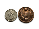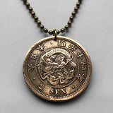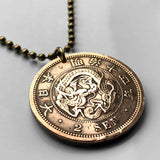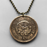 1881 Japan Nippon Nihon 2 Sen coin pendant Japanese Seiryu Watatsumi Yamata Orochi Azure Dragon Tokyo Kobe Osaka Yokohama Fukuoka Kyoto Shinto shrine Samurai era Chiba Kiyomizu-dera Niigata Nagoya Sapporo Nagasaki Saitama Kawasaki Sendai Okinawa n000349