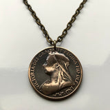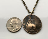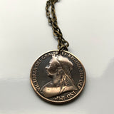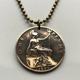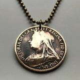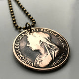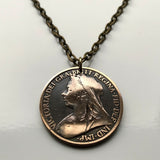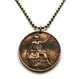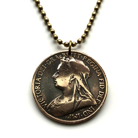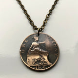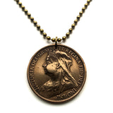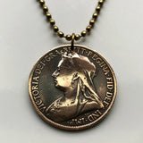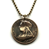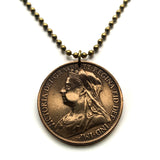 1900 United Kingdom Great Britain England Penny coin pendant British Queen Victoria Britannia London Birmingham Liverpool Nottingham Sheffield Bristol Glasgow Leicester Edinburgh Leeds Cardiff Manchester Reading Portsmouth Newcastle Cambridge York n001616