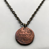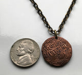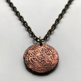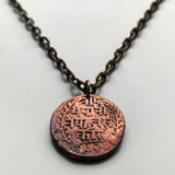 1903 Nepal 1 Paisa coin pendant Nepali Devanagari crescent moon sun trident Nepalese Kathmandu Mohar Himalayan Hindu rhododendronn n002677