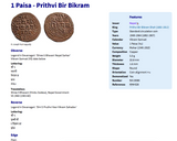 Nepal 1 Paisa ~ Prithvi Bir Bikram {1892-1907} 1S