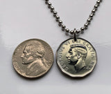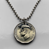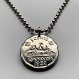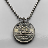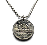 1957 Canada 5 Cent coin pendant necklace fashion jewelry Canadian beaver maple leaves King George VI Ottawa Montreal Quebec Toronto Ontario Vancouver Calgary British Columbia Alberta Nova Scotia New Brunswick Manitoba Nunavut Victoria n003652
