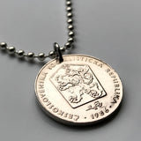 1990 Czechoslovakia 2 Koruny coin pendant necklace jewelry socialist republic Czech lion Slovak shield Prague Cesky Krumlov Bratislava Bohemia Moravia Charles Bridge Brno Cesky Krumlov Kutna Hora Ostrava Slovakia n000433