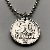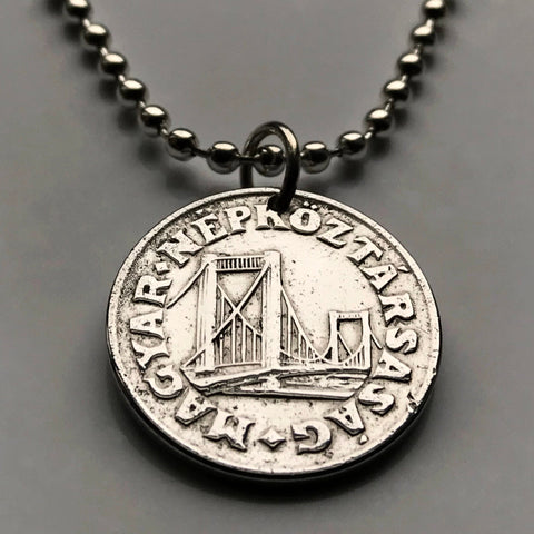 1967 Hungary Magyar 50 Filler Hungarian coin pendant Elisabeth Bridge Erzsébet híd Budapest River Danube March 15 Döbrentei Square Gellért Hill Rácz Rudas Baths Castle Hill Rózsadomb Óbuda n002123